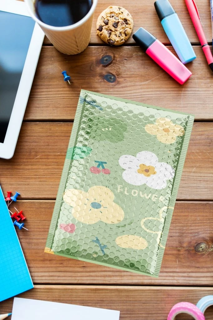 The main feature of a bubble mailer is the bubble wrap lining on the inside. Bubble wrap consists of rows of small air-filled bubbles trapped between two layers of film. This design creates a protective layer that absorbs shocks and impacts, helping to prevent damage to the items inside.
